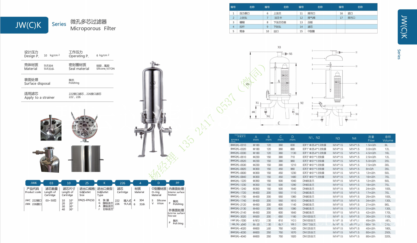 JW系列外壳是质量更优于JY型的液体过滤器外壳,一般安装卡入式滤芯,外壳内外表面高精度抛光处理,花盘可拆卸,无任何死角,特别适用于附加值高的液体终端过滤。